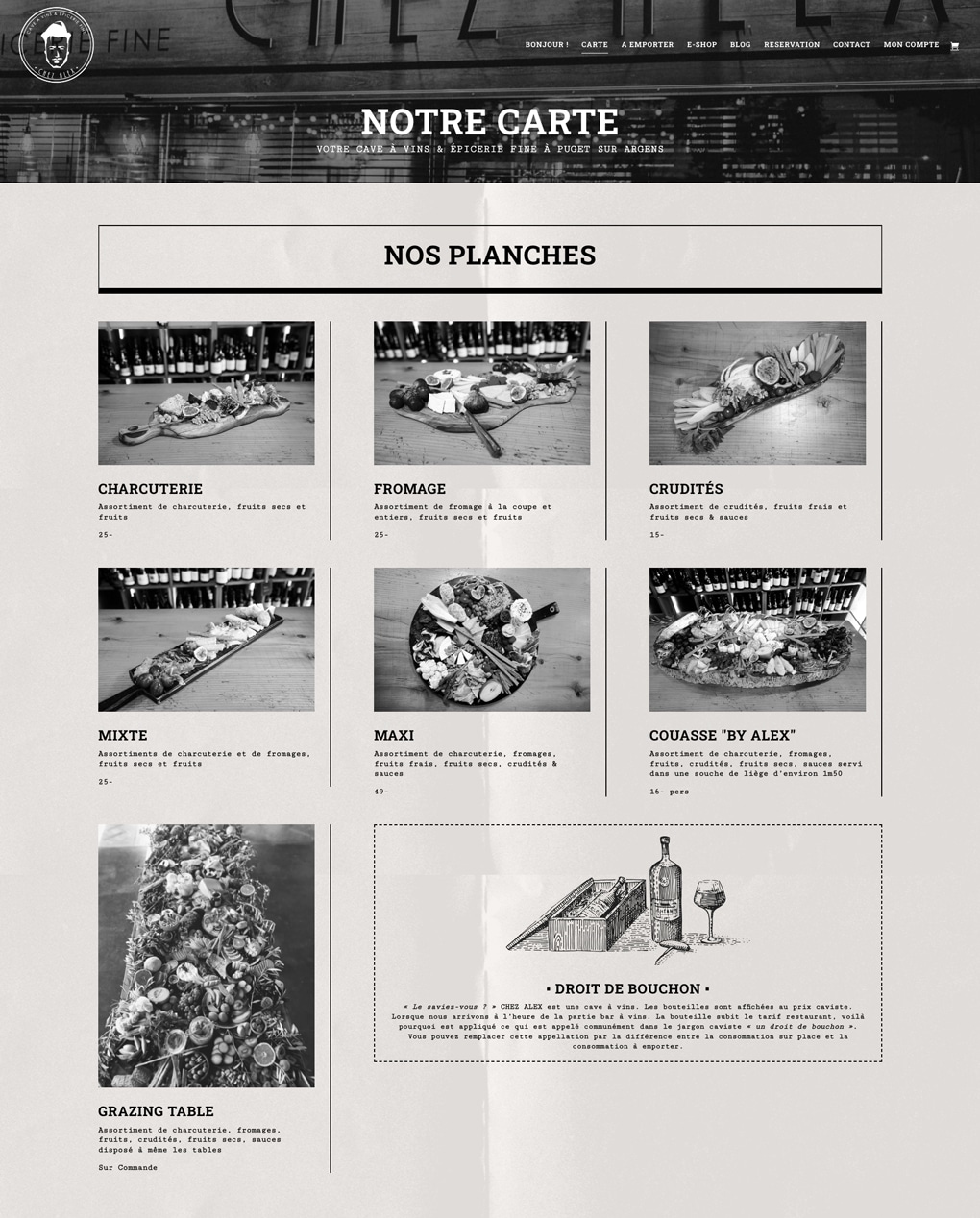 Chez Alex est une cave à vins et épicerie fine implantée à Puget-sur-Argens depuis 2018. Fondée par Alex, ancien barman de nuit reconverti par passion du vin et des bons produits, l’enseigne propose des dégustations, des planches gourmandes, des événements musicaux et un e-shop de produits sélectionnés avec soin.