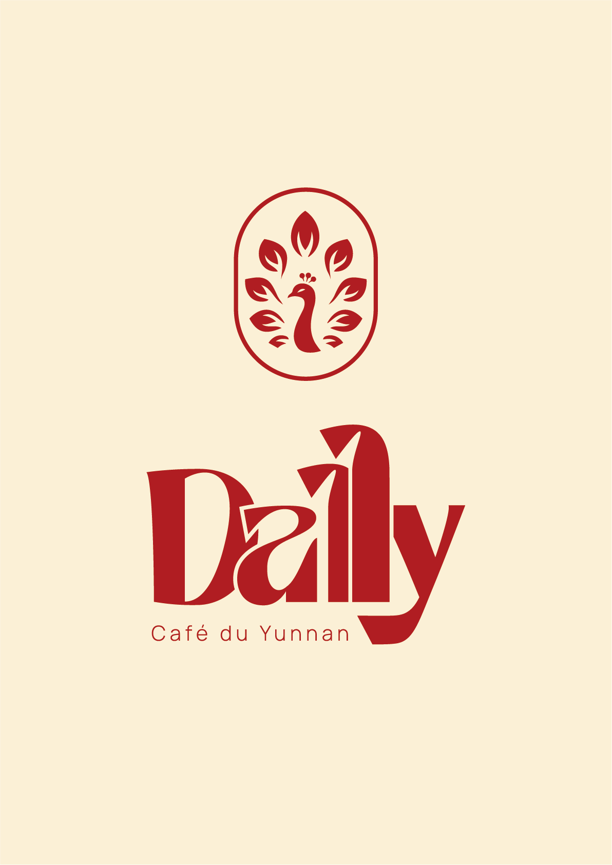 Le symbole représente un paon stylisé, animal emblématique de la province du Yunnan, inscrit dans un médaillon ovale rappelant les sceaux traditionnels chinois. Son corps est composé de feuilles et de végétaux, allusion directe à la nature luxuriante des plantations de café d’altitude.